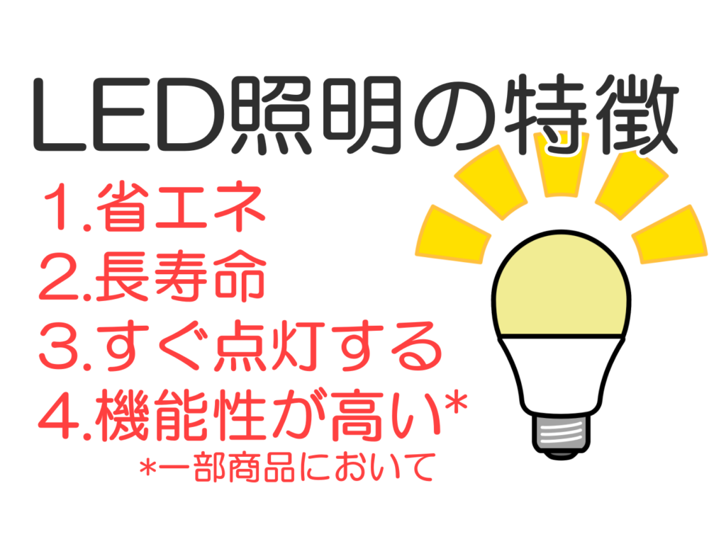 LED照明の特徴の一つは省エネ、消費電力が低いことです。